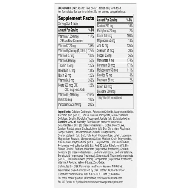 مولتی ویتامین سنتروم بزرگسال بالای 50 سال (325 عددی