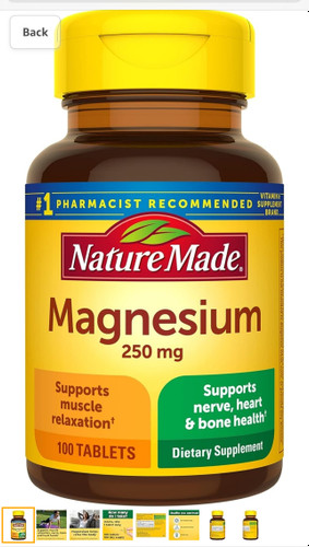 Nature Made اکسید منیزیم 250 میلی گرم، مکمل غذایی برای حمایت از سلامت عضلات، قلب، استخوان و اعصاب، 100 قرص، منبع 100 روزه