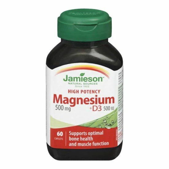 منیزیم ویتامین D3 جمیسون 500 واحد 60 عدد jamieson Magnesium 500 mg + D3 500 IU