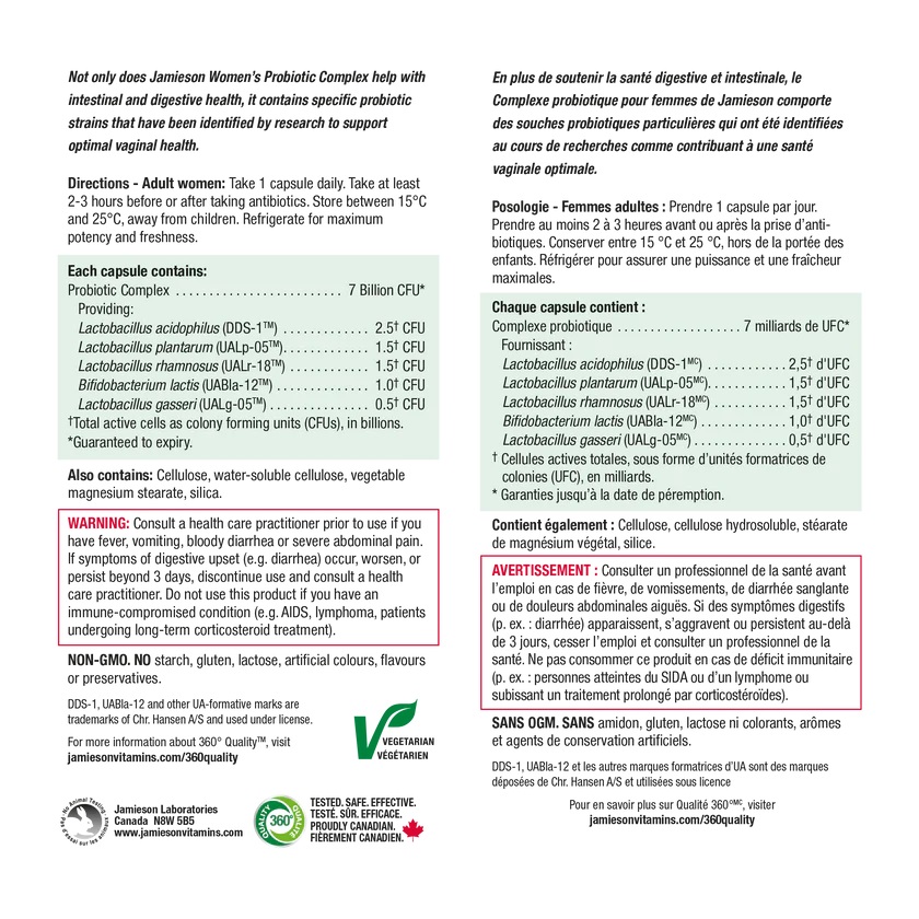پروبیوتیک کمپلکس زنانه جمیسون به سلامت روده و گوارش کمک می کند. این مکمل جیمسون شامل 5 سویه خاص است که توسط تحقیقات برای حمایت از سلامت مطلوب واژن شناسایی شده است.
