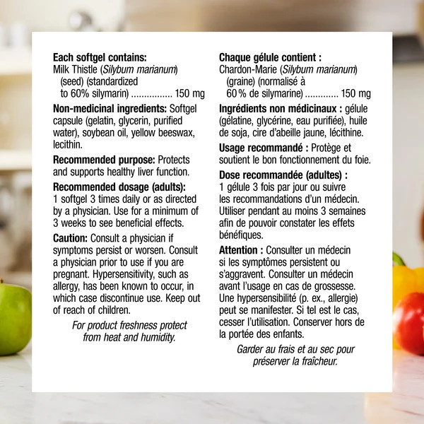 ساخت کانادا- در طب گیاهی برای حمایت از عملکرد کبد استفاده می شود در طب گیاهی به عنوان محافظ کبد استفاده می شود استاندارد شده با 60% سیلیمارین، ترکیب فعال شیرخار در کپسول های راحت و آسان برای بلعیدن تحویل داده می شود