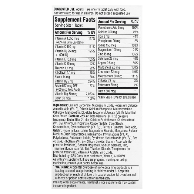 یک رژیم غذایی متعادل برای هر زنی مهم است که بهترین ظاهر و احساس خود را داشته باشد. به همین دلیل است که سنتروم یک مولتی ویتامین کامل، برای رفع نیازهای تغذیه ای منحصر به فرد زنان بالای 50 سال امروزی فرموله شده است. به حفظ استخوان ها و دندان ها کمک می کند.