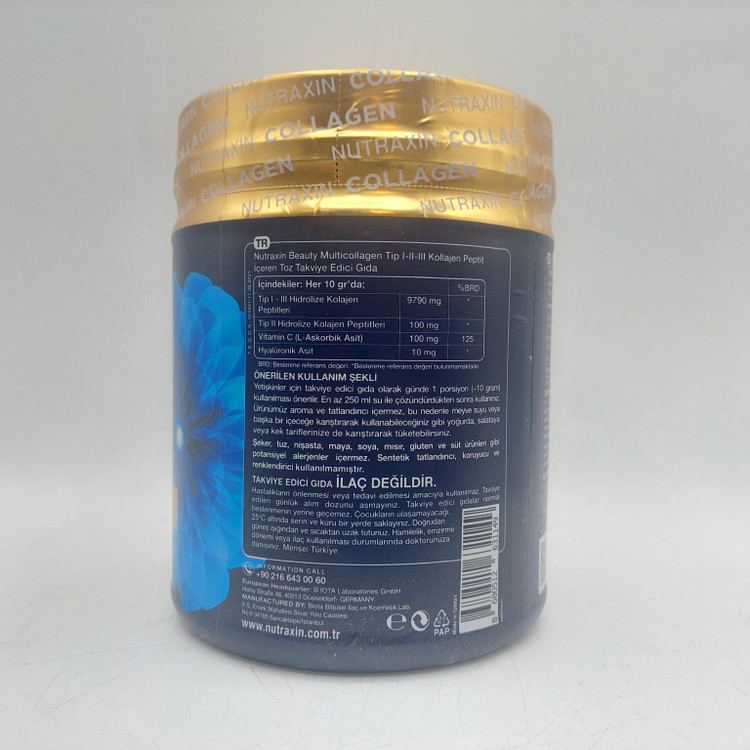 مالتی کلاژن هیدرولیز شده نوتراکسین Nutraxin Hydrolized Multi Collagen یک پودر کلاژن ساخته شده از کلاژن های I، II، III و ویتامین C است. نوتراکسین کلاژن اسید هیالورونیک و ویتامین cرا با هم تامین می کند که در مفهوم زیبایی مهم هستند. کلاژن موجود در آن کلاژن هیدرولیز شده است که به راحتی جذب می شود و بی مزه است. ویتامین C به تولید طبیعی کلاژن کمک می کند که برای عملکرد طبیعی پوست و استخوان ها ضروری است.