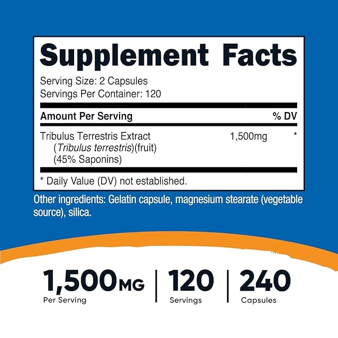 مکمل تریبلوس نوتری کاست حاوی 1500 میلیگرم عصاره تریبولوس تتریس در هر وعده است. این عصاره با 45% ساپونینها (Saponins) استاندارد شده است، که یکی از مهمترین ترکیبات فعال این گیاه به شمار میآید. این مقدار بالا از تریبولوس تتریس در هر کپسول، اطمینان حاصل میکند که مصرفکنندگان از حداکثر فواید این گیاه بهرهمند شوند.