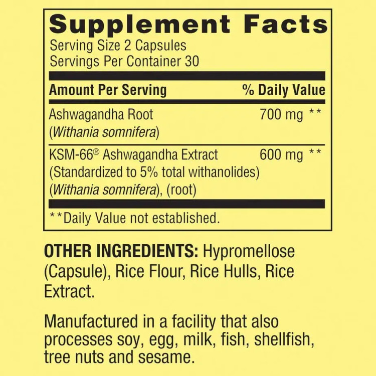 مشخصات محصول Spring Valley Ashwagandha 1300mg
