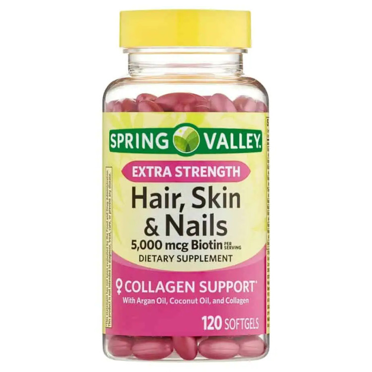پوست، مو و ناخن اسپرینگ والی 120 عددی با حمایت کلاژنی و 5000 میلی گرم بیوتین همراه با فرمولاسیون ویژه با روغن آرگان، روغن نارگیل و کلاژن است. بیوتین به حمایت از مو و پوست سالم کمک می کند و این مکمل 5000 میکروگرم بیوتین در هر وعده را فراهم می کند.