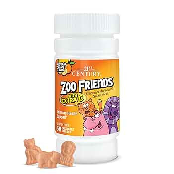🔹 نام انگلیسی محصول: 21st Century Zoo Friends with Extra C Chewable Tablets, 60 Count