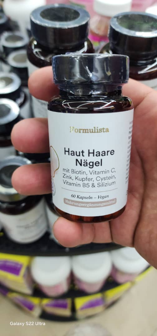 > مکمل Haut Haare Nägel با ترکیب تخصصی بیوتین، زینک، ویتامین C و سیستئین، راهحل کامل برای تقویت پوست، مو و ناخن شماست.