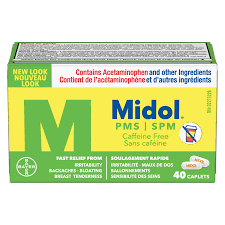 Midol® PMS Caffeine-Free delivers fast multi-symptom relief from pre-menstrual symptoms such as irritability, bloating, breast tenderness, cramps, backache, headache, muscle ache, tension and temporary water weight gain.