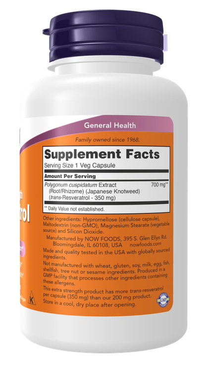 رسوراترول 350 میلیگرم ناو فودز یکی از قویترین مکملهای آنتیاکسیدانی و ضد پیری در دنیا است که از پوست انگور، توتها و گیاه Knotweed استخراج میشود. این ماده نقش کلیدی در سلامت سلولی، محافظت از قلب، افزایش طول عمر و کاهش التهاب دارد.