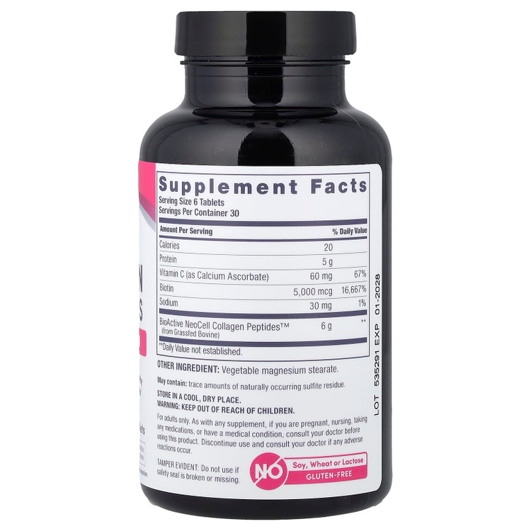 قرص کلاژن پپتاید 6000میلی گرم نئوسل – تغذیه پوست، مو و ناخن ۱۸۰عددNeoCell Grass-Fed Collagen Peptides + Vitamin C & Biotin | –