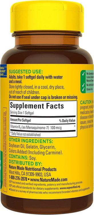 ویتامین K2 نیچرمد 100 میکروگرم | سلامت استخوان و قلبNature Made Vitamin K2 100 mcg