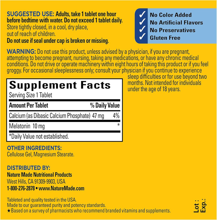 Nature Made Extra Strength Melatonin 10mg یک مکمل فوقالعاده برای بهبود کیفیت خواب و تنظیم ریتم شبانهروزی بدن است. این مکمل برای افرادی که مشکلات بیخوابی دارند، مسافران دچار جت لگ، و کسانی که به دنبال خوابی عمیق و آرام هستند، ایدهآل است.