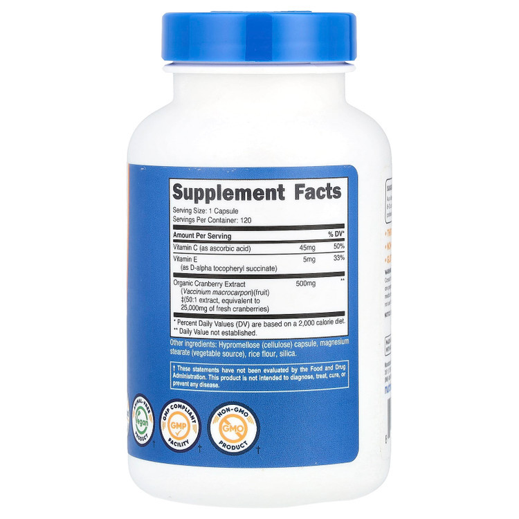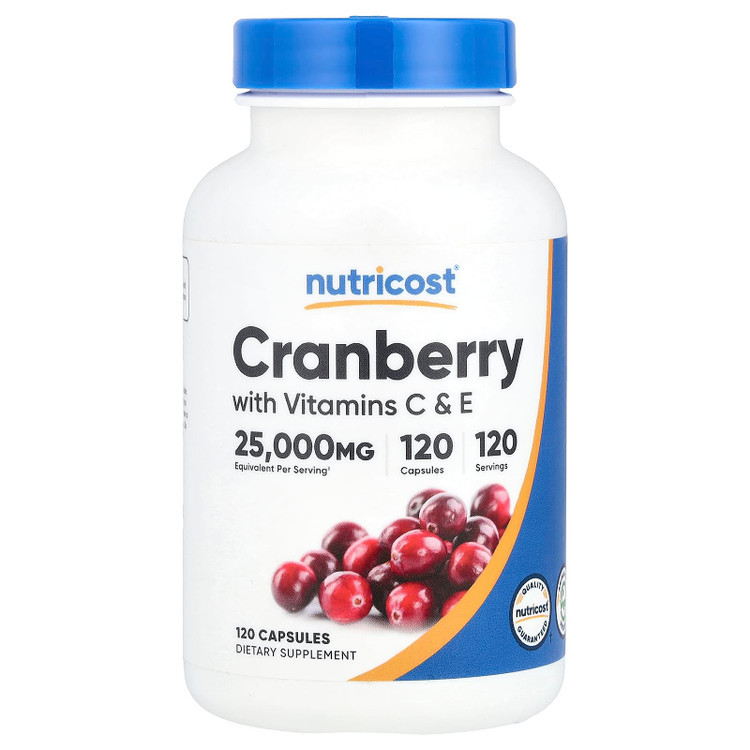 مکمل Cranberry with Vitamins C & E از برند معتبر Nutricost ترکیبی قدرتمند از عصاره طبیعی کرنبری به همراه ویتامینهای C و E است که به طور ویژه برای سلامت مجاری ادراری (UT Health)، پاکسازی کلیهها و تقویت سیستم ایمنی بدن طراحی شده است.