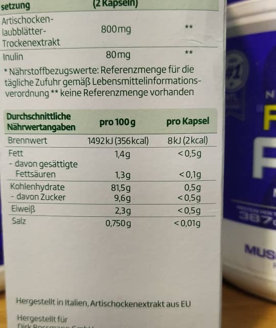 مکمل غذایی با عصاره خشک برگ کنگر فرنگی.