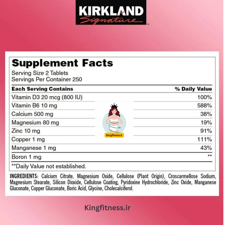 کلسیم منیزیم، سیترات،زینک دی۳، کرکلند(۵۰۰عددی) (Calcium,magnesium,citrate,zinc and vitamin d3 Kirkland