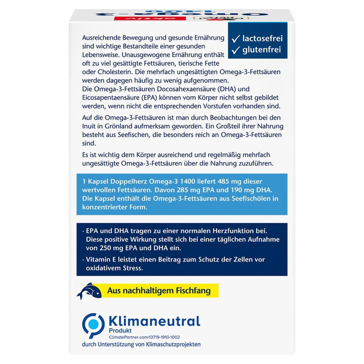 مکمل غذایی با دوز بالا Doppelherz حاوی اسیدهای چرب امگا 3 با ارزش از 1400 میلی گرم روغن ماهی دریا به شکل غلیظ است.