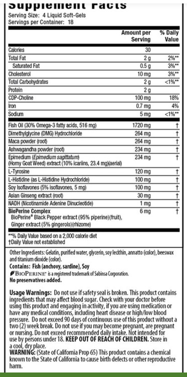 این فرمول Sensoril®، یک عصاره چند اختراع شده از آشواگاندا، یک آداپتوژن که به طور گسترده در آسیا برای آرام کردن بدن و ذهن و کاهش اضطراب گاه به گاه استفاده می شود، فراهم می کند. در یک کارآزمایی بالینی، Sensoril® به طور قابل توجهی سطوح "هورمون استرس" کورتیزول را کاهش می دهد و شرکت کنندگان کاهش احساس استرس و خستگی و بهبود رفاه را گزارش کردند.[8]