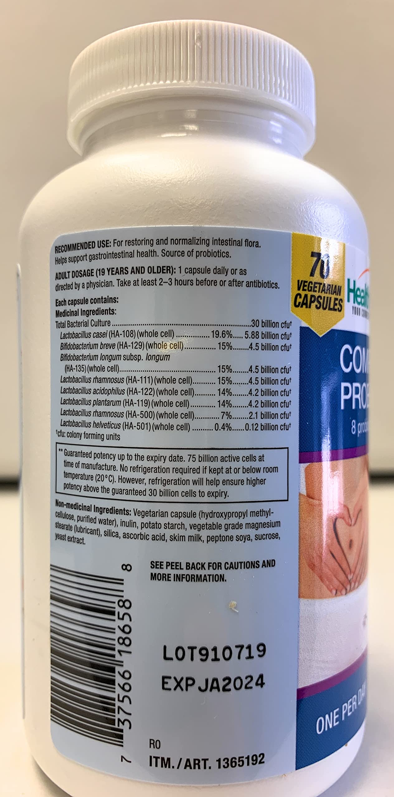 Total Bacterial Culture - 30 billion cfu, Lactobacillus casei - 5.88 billion cfu, Bifidobacterium breve - 4.5 billion cfu, Bifidobacterium longum subsp - 4.5 billion cfu,Lactobacillus rhamnosus - 4.5 billion cfu, Lactobacillus acidophilus - 4.2 billion cfu, Lactobacillus plantarum - 4.2 billion cfu لاکتوباسیلوس رامنوسوس - 2.1 میلیارد cfu، لاکتوباسیلوس هلوتیکوس - 0.12 میلیارد cfu