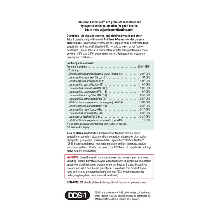 Jamieson 10 Billion یک پروبیوتیک روزانه است که دارای 14 سویه منحصر به فرد برای سلامت کامل روده و گوارش است. این پروبیوتیک میکرو فلور روده را برای سلامت کلی گوارش و سیستم ایمنی متعادل می کند، دو مزیت اصلی که از باکتری های سالم در روده به دست می آید. بسته بندی پیشرفته لوله جیمیسون از هر کپسول پروبیوتیک در برابر گرما و رطوبت محافظت می کند تا قدرت انقضا را تضمین کند.