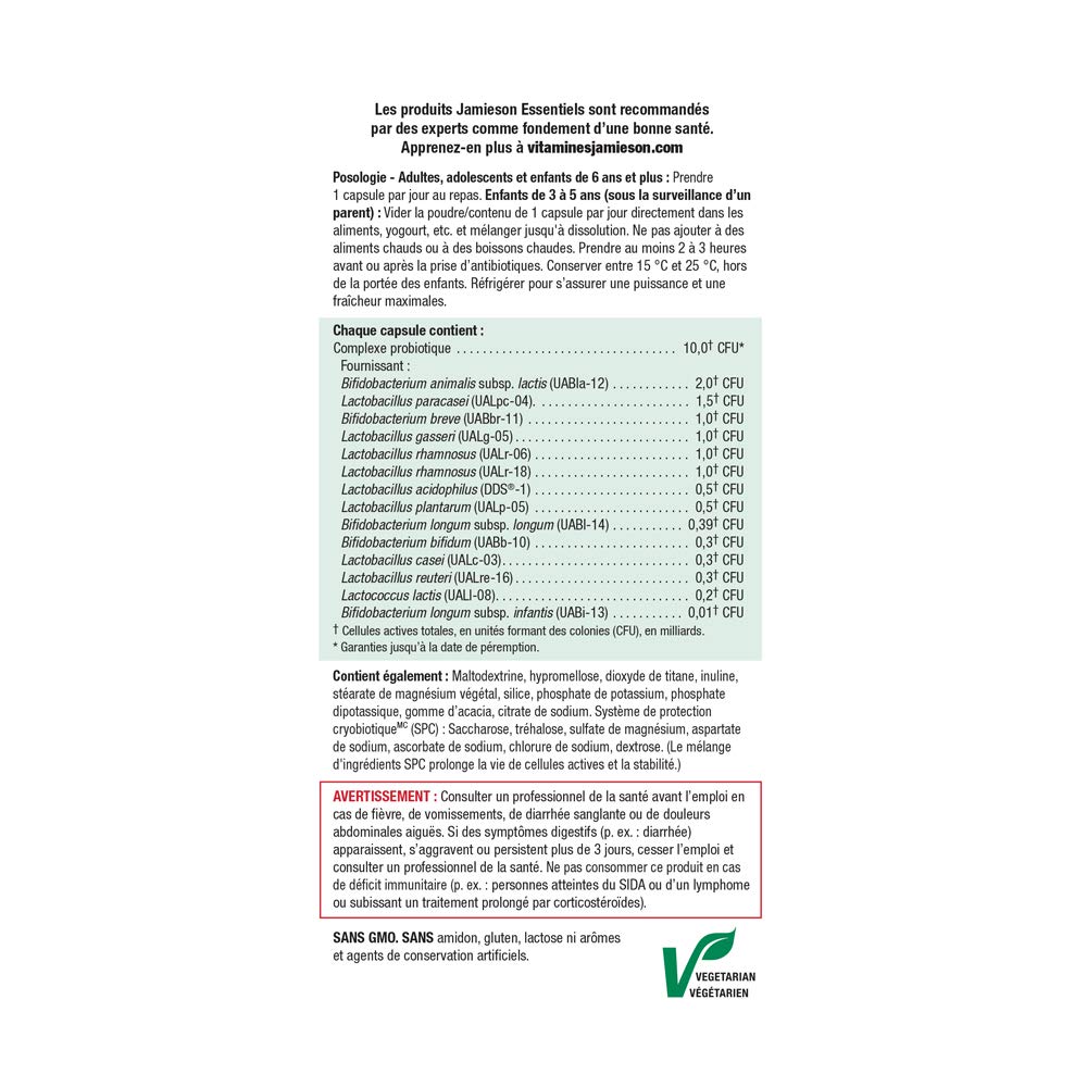 کمپلکس پروبیوتیک 10 میلیارد CFU* متشکل از: بیفیدوباکتریوم انیمالیس subsp. lactis (A026) 2.0 x 109 CFU Lactobacillus paracasei (A234) 1.5 x 109 CFU Bifidobacterium breve (A055) 1.0 x 109 CFU Lactobacillus gasseri (A237) 1.09x1 x 109 CFU Lactobacillus rhamnosus (A193) 1.0 x 109 CFU Lactobacillus acidophilus (A118) 0.5 x 109 CFU Lactobacillus plantarum (A138) 0.5 x 109 CFU Bifidobacterium longum subsp. لانگوم (A027) 0.39 x 109