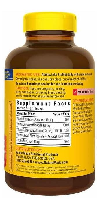 سوپر سی و ویتامین D3 و زینک ۲۰۰عددی نیچرمیدNature Made Super C with (Vitamin D3 and Zinc), 200 Tablets,One per Day Tablet+ Better Guide Vitamins Supplements Book Printed