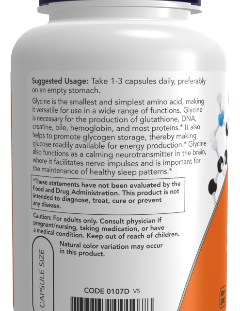 کپسول گلیسین ناو 1000 میلی گرمی حاوی 3 گرم گلیسین در هر سوینگ در کپسول های گیاهی می باشد. گلیسین کوچکترین و ساده ترین اسید آمینه است که آن را برای استفاده در طیف وسیعی از عملکردها همه کاره می کند.