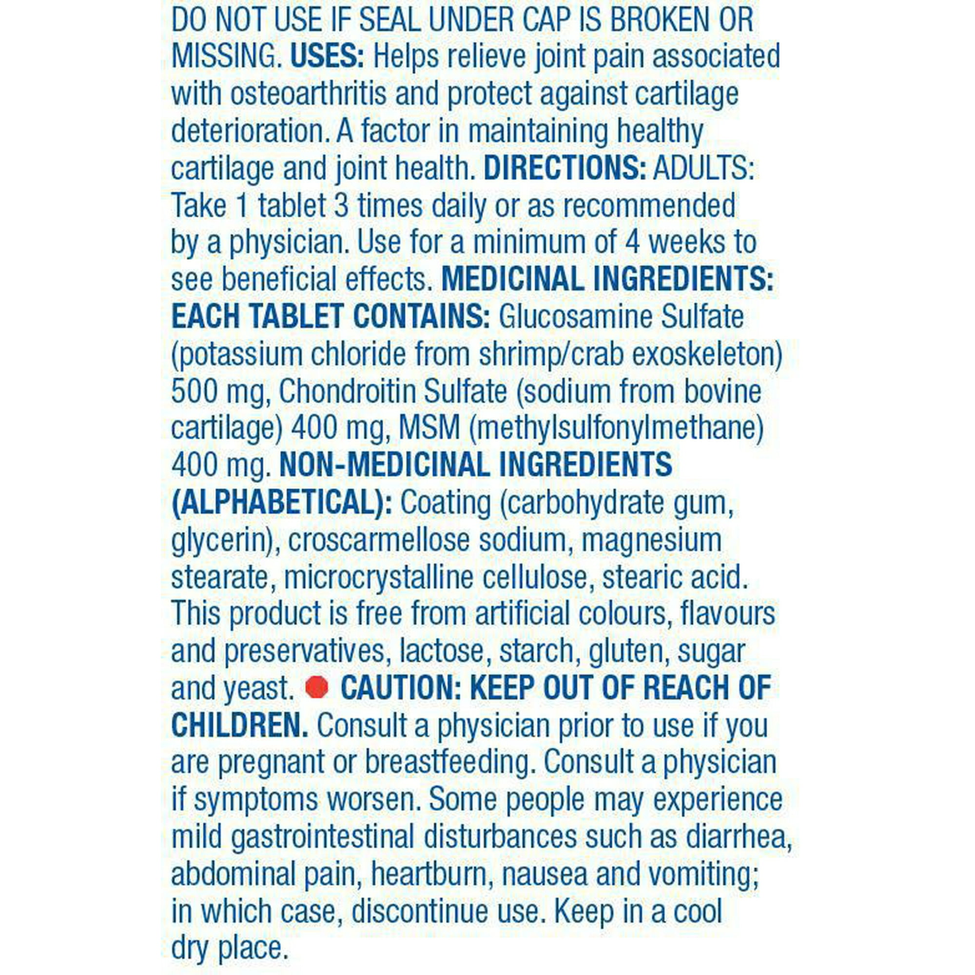 – بدون آلرژن: Equate Glucosamine, Chondroitin & Msm 1300mg فاقد لاکتوز، نشاسته، گلوتن، قند و مخمر است و برای افرادی که محدودیت های غذایی دارند مناسب است.