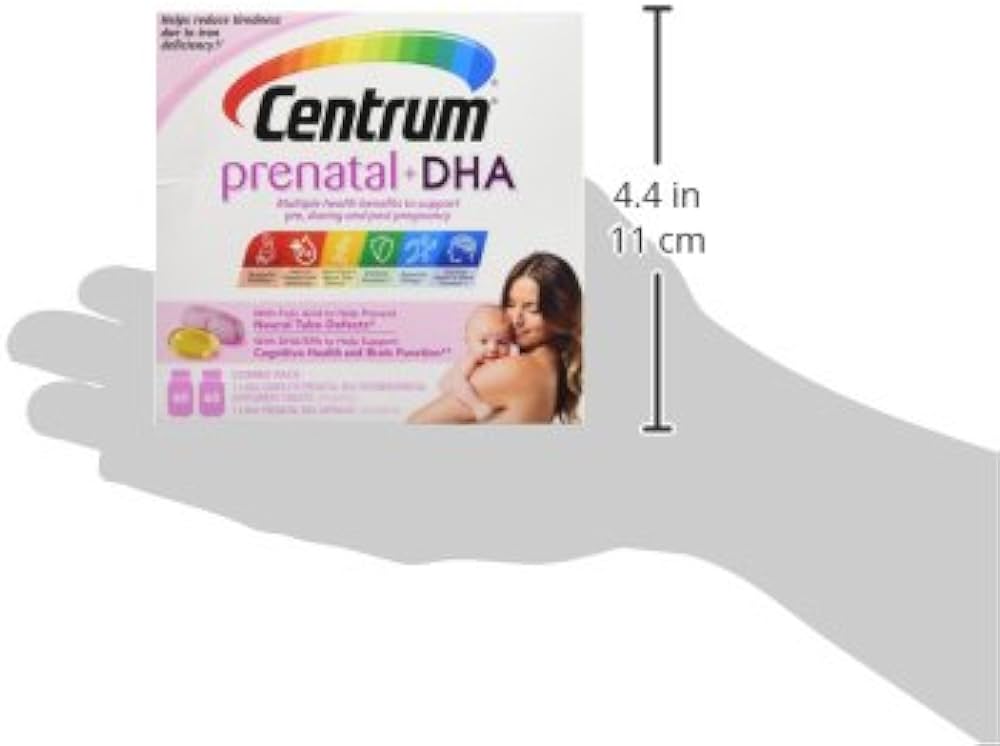 مکمل مولتی ویتامین و DHA قبل از تولد: Centrum Prenatal + DHA که مخصوص زنان قبل، حین و بعد از بارداری است، یک قرص مولتی ویتامین قبل از تولد را با یک ژل نرم کوچک از اسیدهای چرب امگا 3 DHA و EPA ترکیب می کند.
