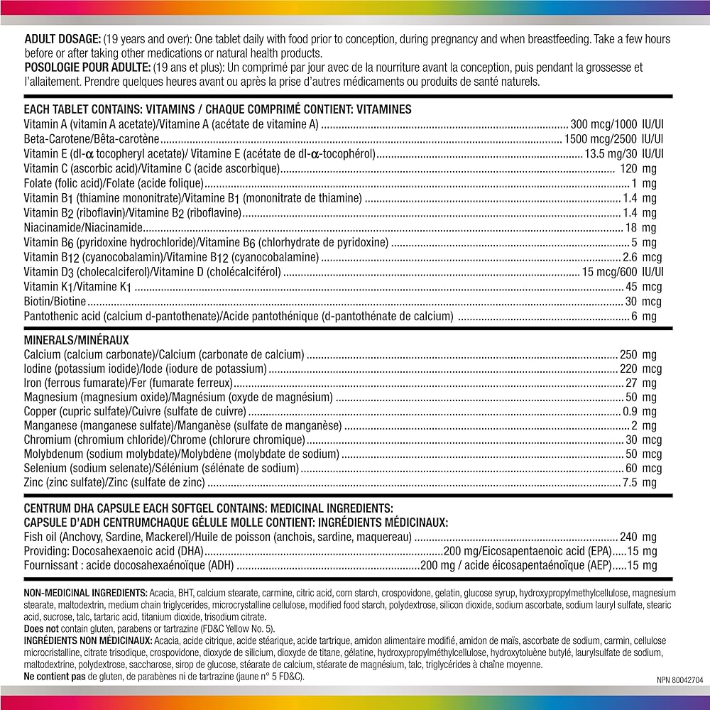 حمایت ایمنی و جلوگیری از نقص لوله عصبی: Centrum Prenatal که توسط انجمن متخصصان زنان و زایمان کانادا (SOGC) به رسمیت شناخته شده است، به جلوگیری از نقص لوله عصبی، * از سیستم ایمنی بدن، و حفظ سطح قند خون سالم کمک می کند.