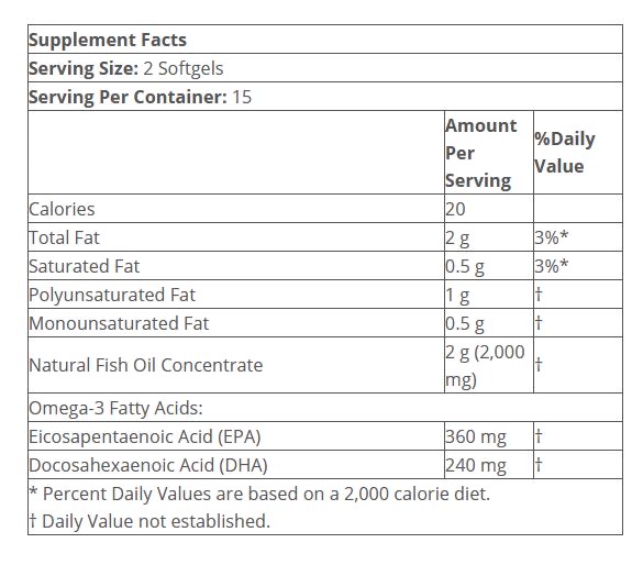 هر قرص حاوی 500 میلی گرم DHA، 250 میلی گرم EPA و 180 میلی گرم ALA است.