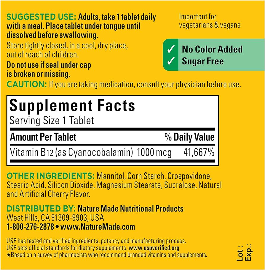 Nature Made Vitamin B12 1000 mcg, Easy to Take Sublingual B12 for Energy Metabolism Support, 50 Sugar Free Fast Dissolve Tablets, 50 Day Supply