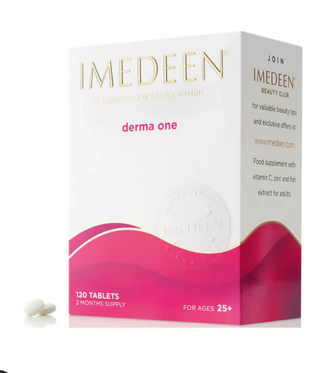 قرص مکمل ایمدین Imedeen Derma One درما وان صورتی دقیقاً طبق نیاز پوست افراد ۲۵ ساله و بالاتر فرموله شده است تا با اولین نشانههای پیری پوست در این افراد مقابله کند. با مصرف ایمدین درما وان صورتی رطوبت پوست شما بهخوبی حفظ میشود بنابراین خطوط سطحی و چین و چروک های پوست شما کمتر مشخص خواهند شد و این قرص مانع از ایجاد چین و چروک بیشتر بر روی پوست شما میشود.
