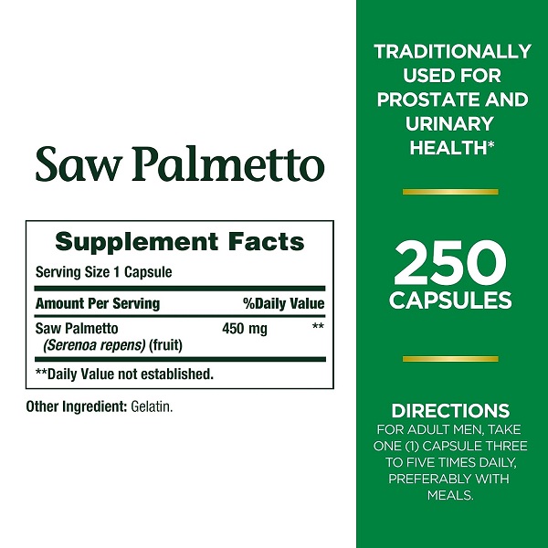 طریقه مصرف عصاره نخل اره ای نیچرز بونتی Nature’s Bounty Saw Palmetto 450 mg