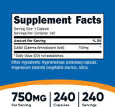 گابا 750 میلی گرم 240 عددی ناتری کاست Nutricost GABA (Gamma Aminobutyric Acid) 750mg