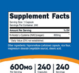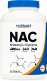 ناک (ان-استیل سیستئین) ناتری کاست Nutricost N-Acetyl L-Cysteine (NAC) 600mg, 240 Vegetarian Capsules