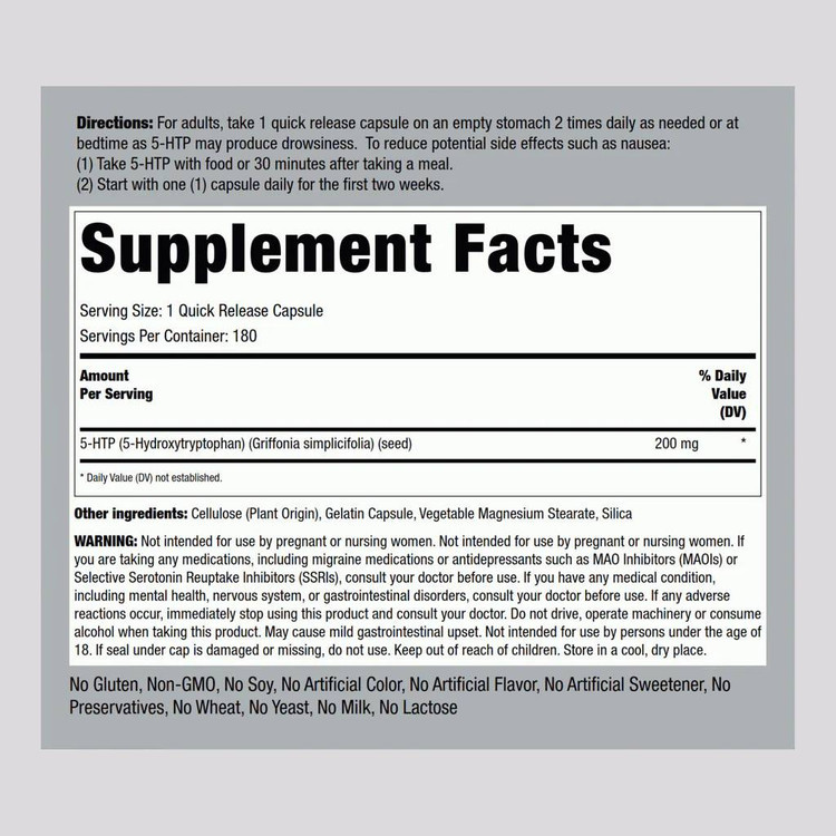 Piping Rock 5HTP 200mg Capsules | 180 Count | Hydroxytryptophan