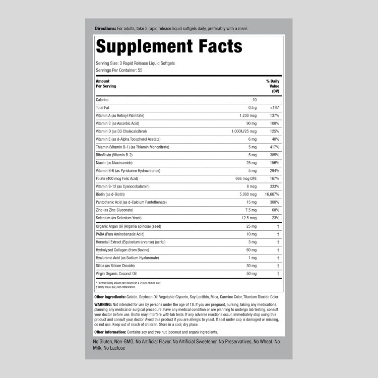 - ترکیبات موجود در مکمل به کاهش چین و چروکها، بهبود لطافت و رطوبت پوست و جلوگیری از پیری زودرس کمک میکنند.