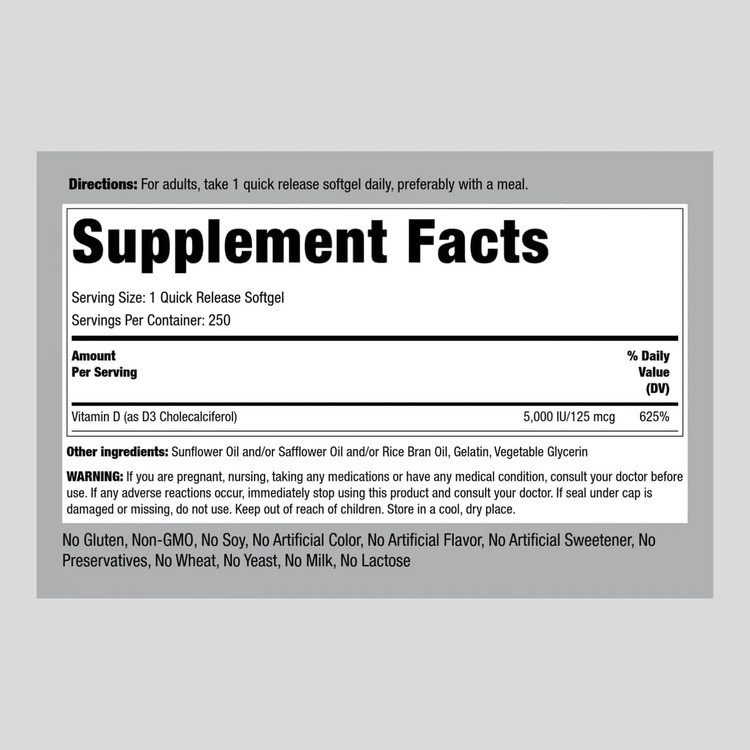ویتامین دی 3 پایپینگ راک 5000 Piping Rock Vitamin D3 5000 IU | 250 Softgels