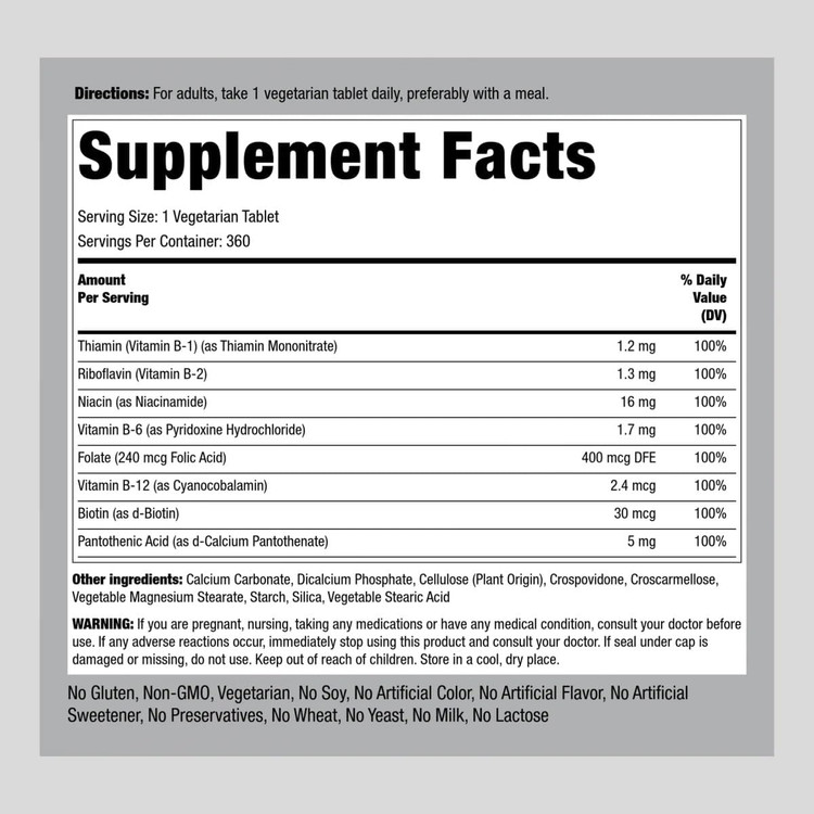 Vitamin B-100 Complex | 360 Tablet Capsules | Vegetarian Supplement