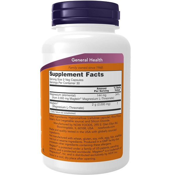 ویژگیهای منیزیم ال ترئونات ناو 90 عدد NOW Magtein Magnesium L-Threonate
